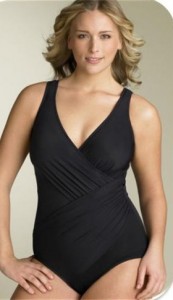 Классические фасоны однотонных купальников не добавят изящества линиям фигуры.