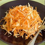 Быстрый, легкий, полезный – салат здоровья и красоты. Для салата потребуется: две моркови, два яблока, зелень петрушки и мяты, две ложки меда и две столовых ложки измельченных и слегка обжаренных грецких ореха, половина чайной ложечки измельченной корицы. Приготовление. Очищенную и хорошо помытую морковь натрите на крупной терке, а яблоки нашинкуйте. Смешайте с медом и корицей, выложите в салатник, украсьте листиками мяты и петрушки. Сверху посыпьте обжаренными и порубленными ножом орехами.