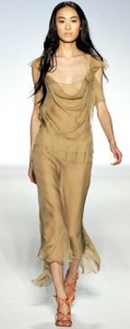 Весной так хочется с себя сбросить шубки и тяжелые дубленки, облачившись в нечто соблазнительное и невесомое. Поэтому-то в весенних коллекциях преобладают пастельные наряды из легчайшего шифона, кружева и шелка пастельных оттенков. В коллекциях, кроме однотонной пастели, присутствует много нарядов с принтами спокойных пастельных оттенков. В коллекции Marc Jacobs присутствуют нежные ромашки, а на показе Bottega Venetta – бежевые фрагменты. Отметим, что платья и блузы с продольными вставками на боках, популярные весной-2012, подтягивают зрительно фигуру и делают тоньше талию.