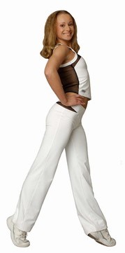 Спортивные игры, физические упражнения на тренажерах, шейпинг, аэробика, стриппластика, стрейчинг, где много разнообразных движений, прыжков, пробежек, растяжек требуют плотно облегающую, хорошо удерживаемую на теле одежду. Низ такой одежды представлен всевозможными лосинами, леггинсами-капри, велосипедками, шортами, обтягивающими комбинезонами, спортивными купальниками, выполненными из мягкой микрофибры, хлопка с добавлением некоторого процента синтетики, что способствует хорошему растяжению на теле при выполнении упражнений. Стягивающие, так называемые слим-шорты используются для получения хорошего эффекта похудения во время занятия фитнесом. Удобный, современный открытый верх одежды, чаще всего используемый женщинами в тренировках, – топы, спортивные лифы с т-образным вырезом, на широких бретелях. Традиционные черные, белые, красные расцветки верха и низа одежды нередко перекликаются с бирюзовыми, желтыми, малиновыми и другими яркими оттенками.