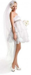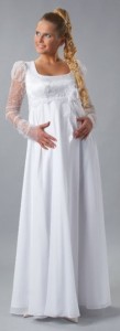 Салон свадебных платьев готов предложить вам огромное количество самых разнообразных нарядов для беременных. Итак, для начала невесте стоит определиться, хочет она спрятать свой красивый животик от посторонних глаз или наоборот подчеркнуть свою индивидуальность. Подчеркнуть свою женственность можно разными способами. Например, будет хорошо смотреться простенький и легкий наряд с бантом на животике. Причем бантик можно повязать розовым или голубым. Это поможет подчеркнуть пол ребеночка, если он уже известен. Такие бантики обычно изготовлены из атласного материала. В моделях с многочисленными кружевами, невеста будет смотреться просто изумительно, а вот животик придаст такому наряду пикантность. Если же вы решили все-таки спрятать свой красивый животик, то здесь подойдет платье с немного завышенной талией. Оно не должно быть плотно обегающим, а просто должно плавно струиться по фигуре. Мелкие оборочки складочки придадут ему красивый и интересный вид. Правильно подберите длину модели. Можно подобрать и платье с корсетом, если конечно, вам нравятся такие модели. Корсеты нельзя сильно утягивать, это может мешать ребенку и быть неудобным маме. А вообще такое счастье, как ребенок, скрывать нельзя, о нем нужно кричать и показывать всем. Поэтому подбирая платье, не стесняйтесь своего интересного положения, и тогда даже гости смогут оценить вашу утонченность. Свадебные платья для беременных можно заказать и от мировых брендов, по каталогам. Цена таких платьев окажется немного дороже, чем стандартных моделей в салонах.