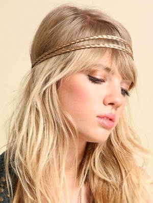 Хиппи -стиль 70-х - тонкая повязка в форме косички, подходит молоденьким девушкам с длинными волосами и смотрится оригинально. Косичка может быть однотонной, либо из жгутиков разного цвета.