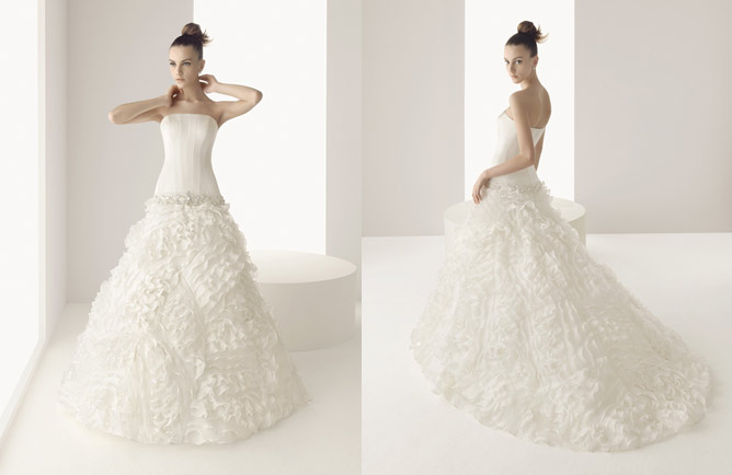 В 2012 году коллекция Rosa Clara состоит тоже из двух линий. Дизайнеров первой вдохновили такие иконы стиля, как Кейт Миддлтон и Грейс Келли. В ней классические свадебные платья, с украшениями из тончайших французских кружев. Дизайнеры второй применили концепцию минимализма: матовые ткани, лаконичные силуэты с обнаженной спиной и ассиметрично расположенной линией ворота.