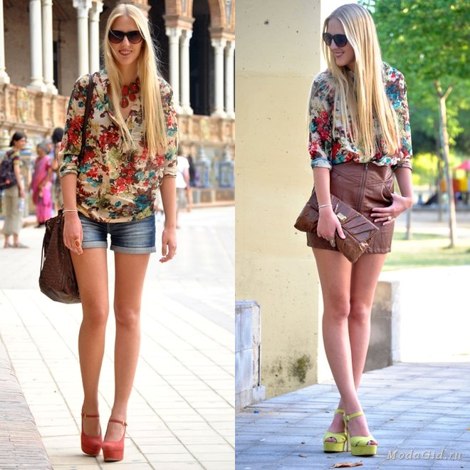 Без проблем, если вы решили заниматься спортом, то спортивные шорты и кроссовки в теме. В противном случае, актуальные вот уже несколько сезонов подряд шорты, отлично будут сочетаться с босоножками, туфлями и даже балетками.