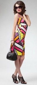 Четкие и яркие геометрические принты с треугольниками, квадратами, кругами, зигзагами и немыслимыми сочетаниями всех фигур сразу привлекают внимание. В такой одежде не получится быть незаметной. Тем более, что выполнены они в чистых, неразбавленных красках – зеленая, желтая, красная и синяя. Также стоит отметить геометрический крой изделий. Прямой силуэт подчеркивает мягкие и плавные линии женской фигуры, смешиваясь с нежными драпировками и воланами.