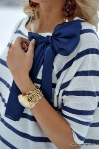Морские мотивы по прежнему популярны. Практически в каждой коллекции были представлены вещи в полоску – узкую, широкую, горизонтальную и вертикальную. Сочетание в одной вещи нескольких типов полоски разного цвета или в монохромном варианте – умение использовать полоску для своего типа фигуры позволит выровнять пропорции фигуры, скрыть лишнее, подчеркнуть необходимое.