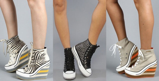 Последним модным веянием стали кеды на шпильке. Их себе позволяют одевать только настоящие модницы, имеющие хорошее чувство стиля. Ведь с такой новаторской идеей довольно тяжело сочетаются трендовые вещи нынешнего сезона. Несмотря на это с кедами до колена умудряются носить даже довольно откровенные и сексуальные наряды. Здесь главное не переборщить с агрессивностью общего внешнего вида и разбавить его другими акцентами. Но при желании можно построить весь свой образ именно вокруг кед на каблуке.