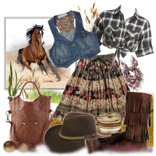 Если этот стиль вам близок по духу, можно смело приобретать кожаную, джинсовую и замшевую одежду. Не забудьте дополнить образ шляпой, сумкой-мешком, шейным платком и несколькими аксессуарами. Однако если вы хотите чувствовать себя свободно и уверенно, не забудьте о чувстве меры – не стоит использовать все атрибуты стиля кантри одновременно.