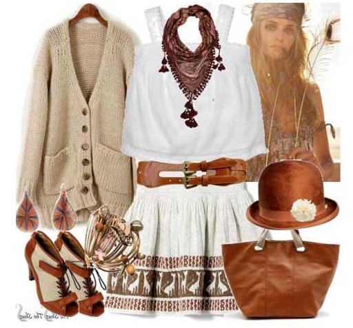 Кроме того, этому стилю соответствует жилетка из кожи или замши, кардиган или пончо грубой вязки, а также вышивка и кружева для торжественных случаев. Сегодня этот стиль одежды прекрасно гармонирует с другими модными направлениями и становится их лаконичным дополнением.