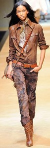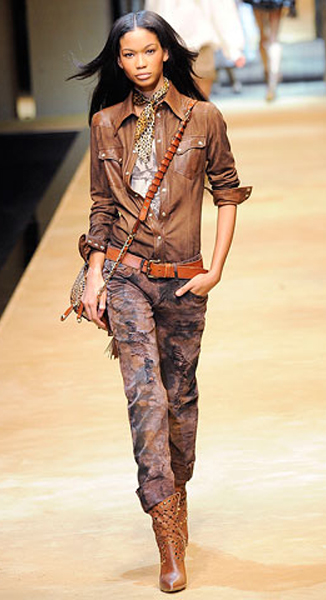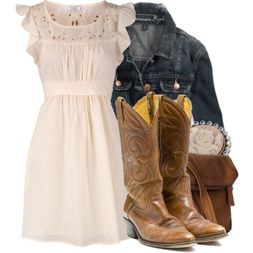 Одежда в стиле кантри содержит множество деталей – вышивку, яркие цвета, узоры и орнаменты, сапоги с широким голенищем, кожаные жилеты, куртки, соломенные головные уборы с широкими полями, легкие кружева и т.д.