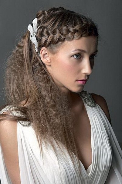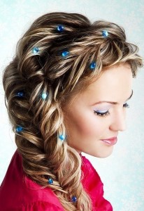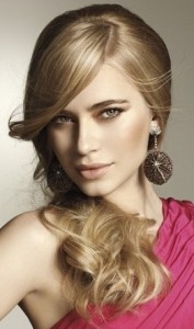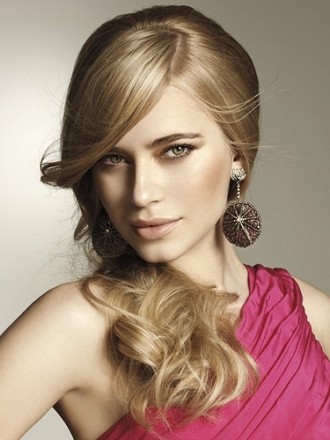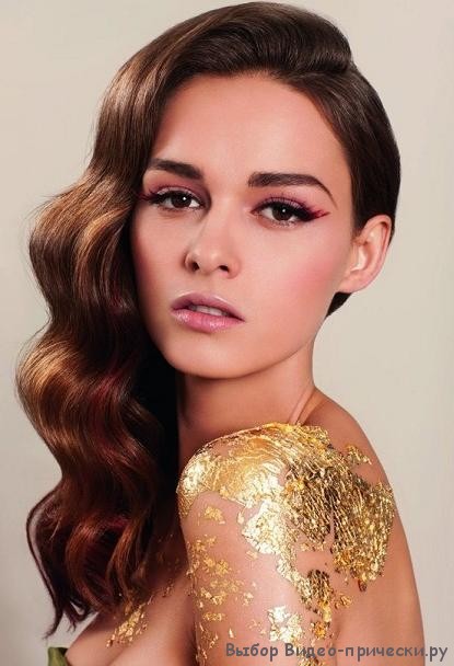Некоторые обладательницы длинных волос, подражая звездам Голливуда, делают объемные локоны и укладывают их на одну сторону. Такая укладка смотрится эффектно и торжественно, поэтому те девушки, у которых волосы короткие или средней длины, тоже делают подобную прическу. Празднично смотрятся и косы, равномерно чередующиеся с локонами.