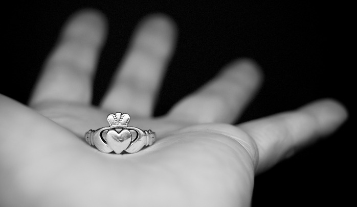 Таким знаком могут стать кладдахские кольца, названные так в честь ничем не примечательной ирландской деревушки. Вернее, почти ничем, кроме одной старинной легенды о невесте, которая ждала-ждала своего жениха, попавшего в плен к арабам, и… дождалась. Через много лет любимый вернулся, и они поженились.