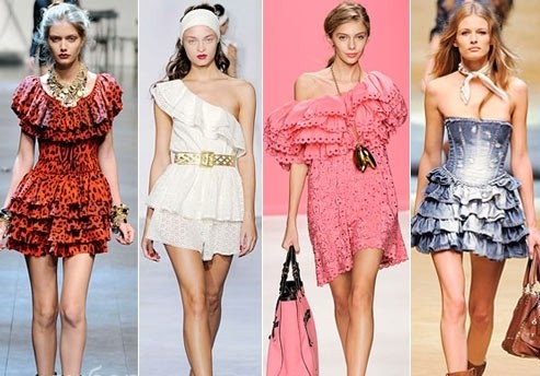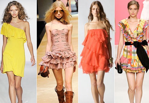Равные параметры бедер и плеч требуют платья с рюшами, оборками, воланами, драпировками, которые придадут дополнительный объем проблемным местам.