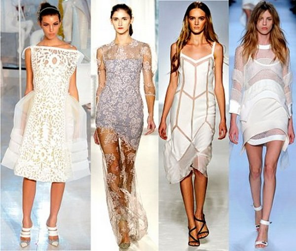 Прозрачные и полупрозрачные тона не спешат сдавать своих позиций и в 2014 году становятся невероятно популярными и востребованными, ведь так приятно производить на представителей противоположного пола буквально сногшибательное впечатление в полупрозрачных или прозрачных блузах, комбинезонах, юбках и платьях.