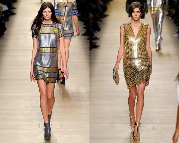 Уже на протяжении нескольких сезонов пользуются просто огромной популярностью ткани с эффектом жидкого металла. Эти материалы не только не собираются покидать модный пьедестал, но и с каждым днем становятся все более популярными и востребованными. Дизайнеры представили не только платья, топы, юбки в традиционном «золоте» или «серебре», но и предложили модницам очень неожиданное решение – наряды из совсем «не металлических» оттенков, но в то же время дополненные разнообразными стильными принтами. Такой образ просто идеально подойдет для уверенной в себе и сильной девушки, которая стремится всегда и везде привлекать к себе всеобщее внимание.