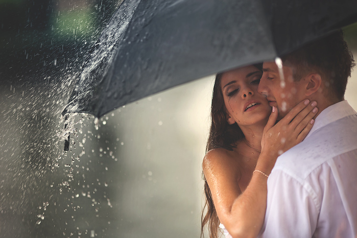 Прогулка под дождем – это один из самых романтичных моментов. Оба, промокшие, укрываются в беседке, где согревают друг друга в объятиях. Или укутавшись в плед, сидят на диване рядышком и пьют чай или горячий глинтвейн. Такие моменты сближают, за что влюбленные должны благодарить именно дождь. К слову, есть в календаре даже День прогулок под дождем – 18 июля.