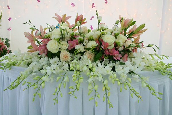 Для того чтобы оригинально, помпезно и изысканно украсить банкетный зал для свадебного торжества, флористы советуют воспользоваться пирамидами, выполненными из растений, а также выполнить изысканные и грациозные арки и даже колонны внушительных размеров. В этом оригинальном стиле оформляются переходы, а также лестницы, внося в композиции мелкие цветы, которые добавляют ауре воздушности и легкости. Проходы в зал также оформляется в подобном неутомимом стиле.