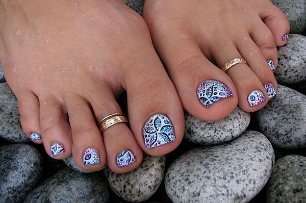 Модный педикюр летнего сезона 2014 года допускается создание принтов с природными мотивами. За их основу может быть взят животный мир (насекомые, птицы) либо растительность (цветы и деревья). К числу необычных вариантов относятся рисунки в стиле «абстракция». Кроме того, в моду входят геометрические формы, поэтому рекомендуется наносить на ногти круги, зигзаги, прямые линии, углы и прочие фигуры.