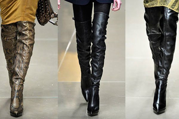 Главный фаворит осени 2014-го года – это ботфорты, при этом их длина может быть не только выше колена, но и достигать середины бедра. Ботфорты могут быть на каблуке, танкетке или плоской подошве. Благодаря такой обуви девушки будут выглядеть сексуально и элегантно одновременно, к тому же такая модель сапог визуально удлиняет ноги и делает их более стройными. Важно помнить, чтобы не создать легкомысленный и вульгарный образ, необходимо знать, с чем носить такую обувь.