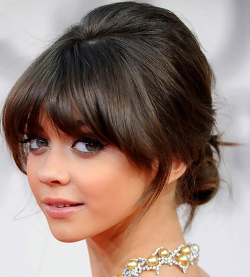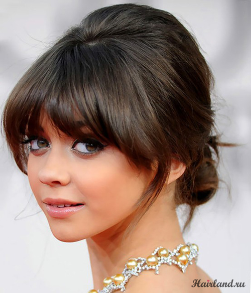 3. Челка с начесом. Эта необычная стрижка подходит не для всех девушек. Над ее созданием нужно хорошо поработать. При укладке на нее наносится гель, и пряди начесываются вверх. Надежность обеспечивается с помощью заколки. Если челка будет косой, а не прямой, девушка будет выглядеть еще более эффектно.
