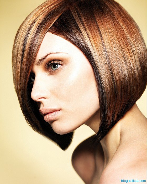 4. Стрижка «боб». Особо эффектно выглядит при ровной стрижке. Существует много видов этой стрижки, они подойдут девушкам с разными формами лица. Кроме того, стрижка подходит для дам с короткой шеей. Женщинам с тонкими волосами и вытянутым лицом подойдет каскадный вариант прически.