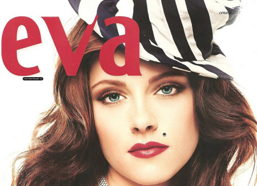 Звезда сумеречной саги актриса Кристен Стюарт предстала для нас в необычном образе на обложке чешского журнала Eva. Образ соблазнительной девушки, очень даже идет Кристен: туфли на высоком каблуке, обтягивающее боди, яркий макияж и струящиеся локоны. Стилисты и визажисты поработали на славу, получился очень женственный, гламурный и эффектный образ.