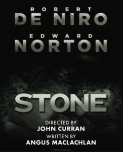 Премьера нового триллера от режиссера Джона Карена «Стоун» состоится 7 октября 2010 года. Нас ожидает отличный звездный состав: Роберт Де Ниро, Мила Йовович, Эдвард Нортон, которые сыграли главные роли в фильме.