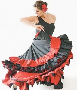 Обязательными элементами фламенко считаются – широкая красная юбка, кастаньеты и туфли на устойчивых каблуках.