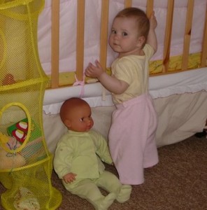 Ваш малыш уже хорошо стоит на ножках, тогда вы ему сможете предложить походить, держась за диван, низкий стол или кроватку. Попросите его, чтобы он отпустил ручки и похлопал в ладоши или подошел к вам, расстояние должно быть от вас до ребенка не более двух шагов. Но не переусердствуйте! Все индивидуально, малыш сделает первые шаги, лишь только когда его позвоночник, суставы и чувство самосохранения хорошо будут развиты.Автор: Наталья Коньковаъ