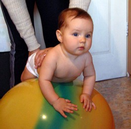 Положите кроху на бок. Осторожно подталкивая в спинку, поворачивайте до тех пор, пока он не обопрется на одно плечо. При этом поддерживайте его голову. Сначала на спинку, затем на животик. Это упражнение поможет вашему малышу научиться поднимать голову.Продолжаем упражнения в 6 месяцев.
