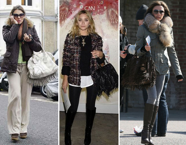 Сумки. Вы заметили, что сумки с каждым новым модным сезоном становятся намного объемнее, а такое оригинальное дополнение, как бахрома, наградит вашу сумку оригинальностью. Предпочтения отдают обычно коричневым, серым или черным сумкам с бахромой.