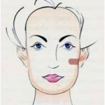 Если у вас слабо выраженный подбородок, и лицо одинаково по горизонтали и вертикали, занчит вы обладательница круглого лица. Ваша задача, удлинить лицо, за счет уменьшения объема щек. Круглое лицо можно немного сузить, если нанести на щеки большой круглой кистью темную пудру, а румяна – в виде треугольника на скулы. Таким образом, ваша круглая форма лица будет казаться визуально уже.