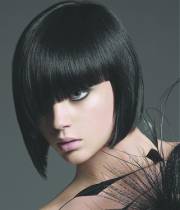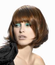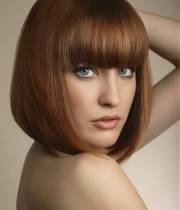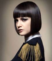 Для молодых и юных особ. Боб-каре, акцент – густая короткая челка. Это один из дерзких вариантов боба. А когда же еще дерзать, как не в юности? Короткая челка открывает лицо, делает черты лица выразительнее и подчеркивает глаза. Не бойтесь экспериментировать с цветом волос, в юном возрасте это более чем доступно: от огненно-рыжего до платины, разноцветное тонирование или глубокий черный.