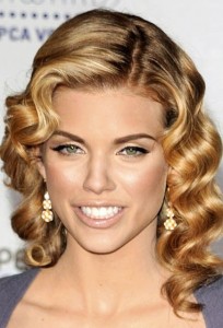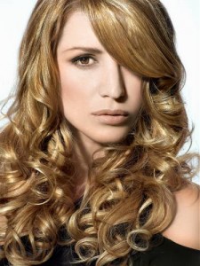 Первое. Крупные кудри. Мягкие струящиеся по плечам локоны в стиле «девушки Бонда» – мощное оружие, способное поразить не только агентов 007. Поэтому, выглядеть они должны так естественно, словно к ним и не прикасалась рука парикмахера. При помощи щипцов или бигуди крупного диаметра, помогут вам создать натуральные крупные завитки. Накручивайте волосы перпендикулярно пробору, отступив от корней 1-4 см (в зависимости от того, где вы хотите видеть «начало» кудрей). Завитые кудри разберите пальцами и сбрызните лаком.