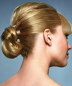 Небольшой совет: накручивать волосы следует только после того как они собраны в хвост, а волосы на макушке и по бокам идеально приглажены – волосок к волоску, допустима гладкая челка или несколько прядей обрамляющих лицо.