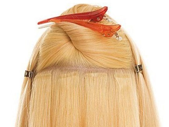 Ленточное наращивание относится к холодным видам наращивания волос. Технология настолько проста, что выполняется даже в домашних условиях. На свои волосы скотчем наклеиваются пряди, ширина которых обычно составляет 4 см. Клей на скотче специальный – безопасен для волос, легко снимается соответствующим растворителем и позволяет использовать для создания причесок фен и щипцы, правда, только при невысоких температурах.