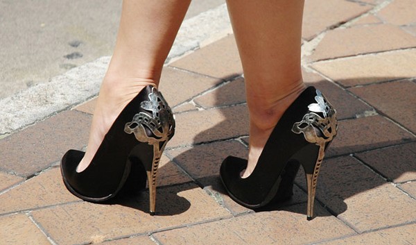 Модель №4 – блестящая обувь. Обувь может быть выполнена из блестящего материала и быть однотонной или же она может быть изготовлена из матовой кожи и быть украшена яркими блестящими декоративными элементами. Кроме того, из блестящего металла может быть сделан только каблук, что придаст вашему образу шик.